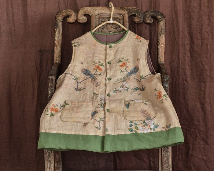 優寶購物《ubao.Tw》特貨品商城,黑貓宅配,取貨付款,燕燕~棉麻商品~亞麻材質 印花夾棉盤扣保暖背心 | Yahoo拍賣