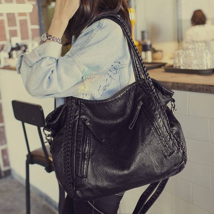 優寶購物《ubao.Tw》特貨品商城,黑貓宅配,取貨付款,韓版時尚真皮機車包休閒簡約單肩手提包斜背包托特包編織包百搭大容量軟皮包 | Yahoo拍賣