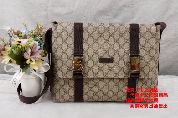 優寶購物《ubao.Tw》特貨品商城,黑貓宅配,取貨付款,優買二手精品名牌店 GUCCI 122373 咖 PU GG 斜背包 書包 電腦包 郵差包 記者包 航空包 信差包 二 | Yahoo拍賣