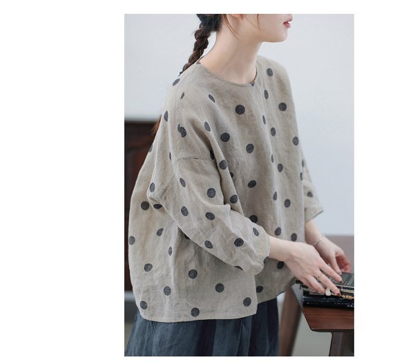 優寶購物《ubao.Tw》特貨品商城,黑貓宅配,取貨付款,(老銀屋)夏季設計款高端細緻圓點緹花雨露麻百搭上衣 | Yahoo拍賣