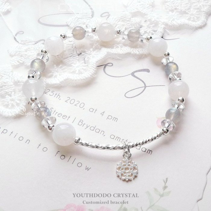優寶購物《ubao.Tw》特貨品商城,黑貓宅配,取貨付款,水晶手鍊客製款-月光石x拉長石x白水晶隔片x925純銀雪花(YHC-0691)*╮柚子多多╭* | Yahoo拍賣