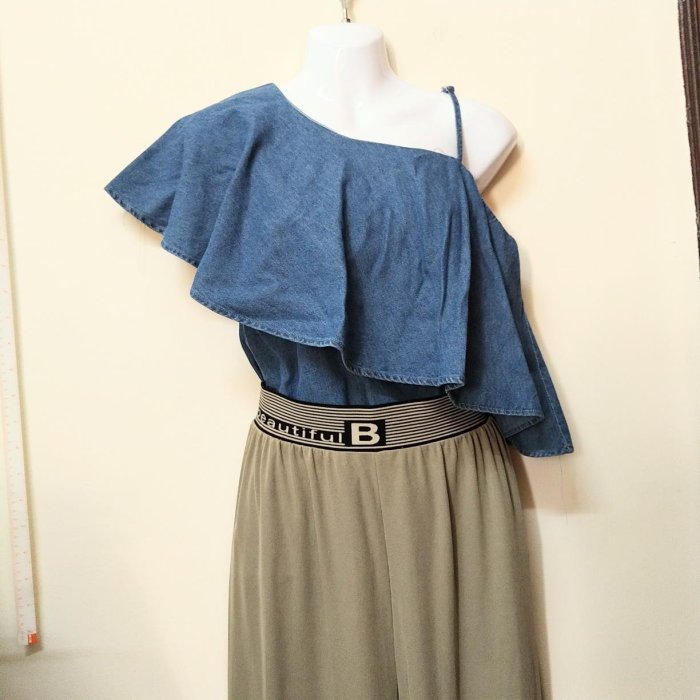 優寶購物《ubao.Tw》特貨品商城,黑貓宅配,取貨付款,全新斜肩牛仔上衣 | Yahoo拍賣