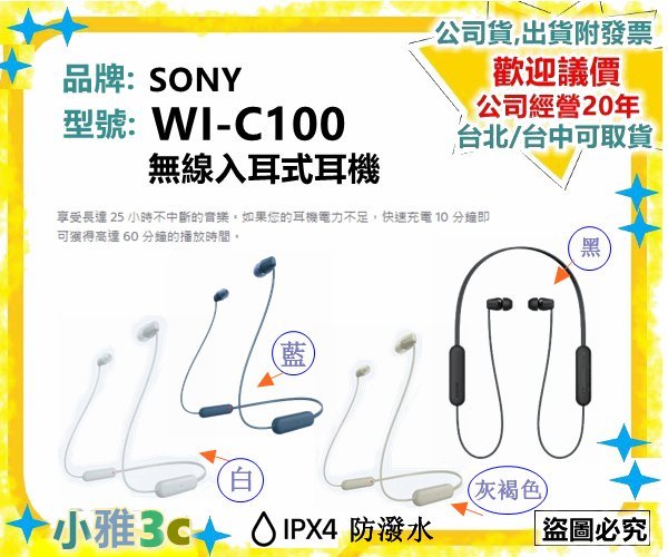 優寶購物《ubao.Tw》特貨品商城,黑貓宅配,取貨付款,〈現貨〉公司貨開發票 SONY WI-C100 無線入耳式耳機 WIC100 藍芽耳機 頸掛式 .【小雅3C】台北 | Yahoo拍賣