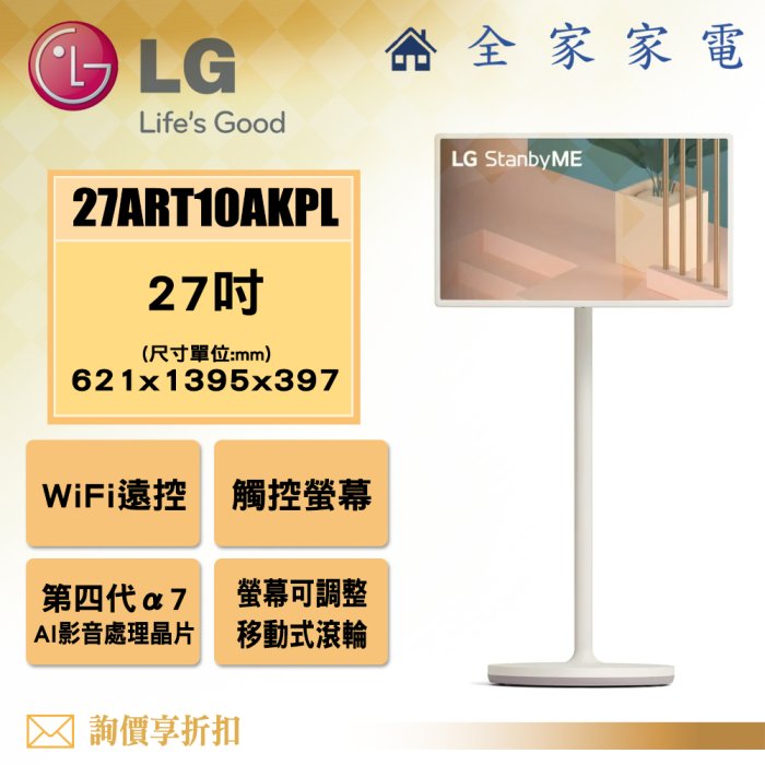優寶購物《ubao.Tw》特貨品商城,黑貓宅配,取貨付款,【全家家電】LG 電視27ART10AKPL LG StanbyME 閨蜜機 27吋【問享折扣】 | Yahoo拍賣