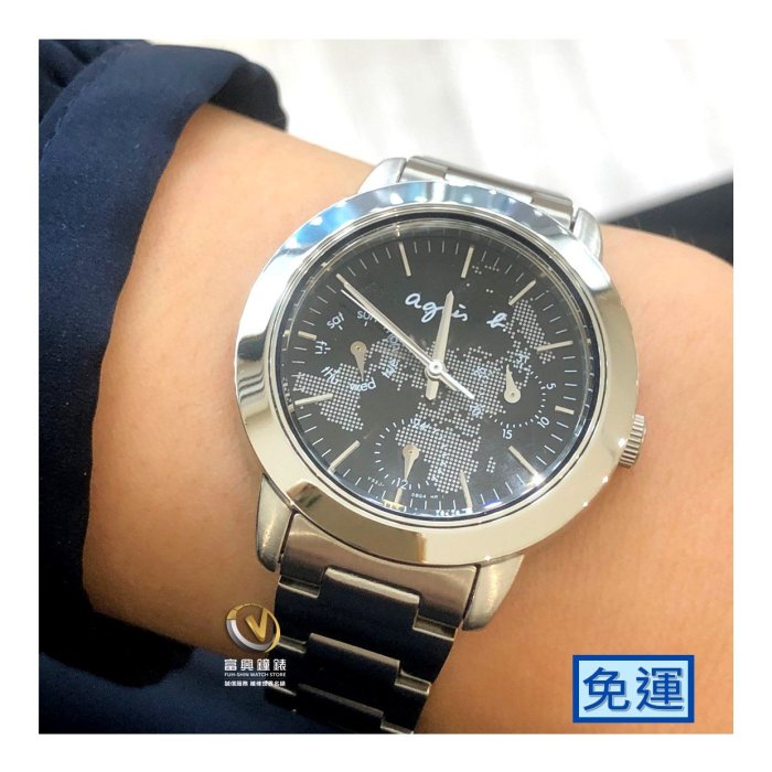 優寶購物《ubao.Tw》特貨品商城,黑貓宅配,取貨付款,agnes b 經典世界地圖系列 三眼日星期女錶-黑☆公司貨☆BYU061P1_實體店面◎富興鐘錶 | Yahoo拍賣