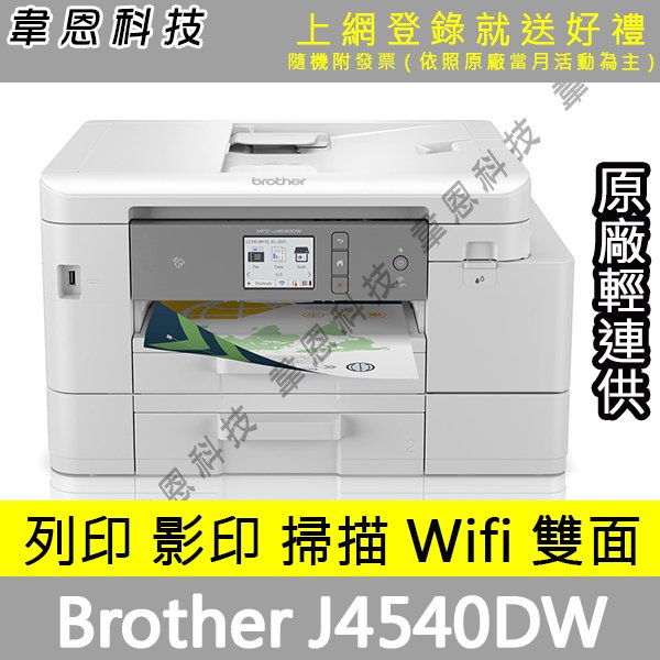 優寶購物《ubao.Tw》特貨品商城,黑貓宅配,取貨付款,【高雄輕連供-含發票可上網登錄】Brother J4540DW 列印,影印,掃描,傳真,無線網路,有線網路 印表機(方案B) | Yahoo拍賣