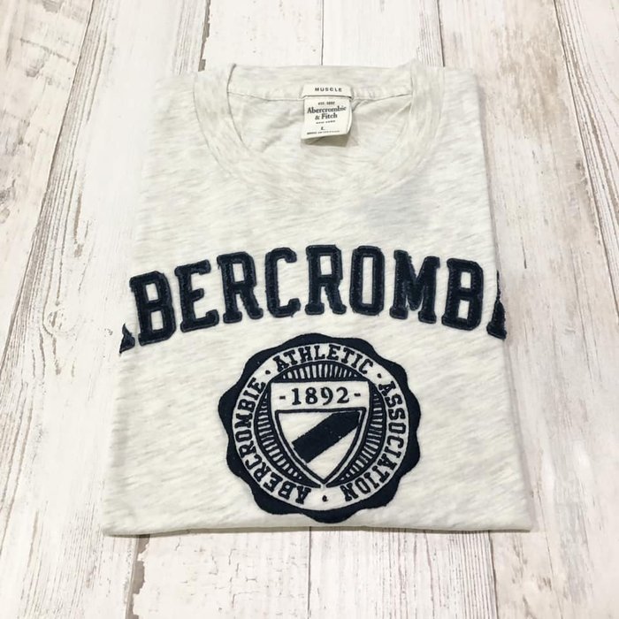 優寶購物《ubao.Tw》特貨品商城,黑貓宅配,取貨付款,Maple麋鹿小舖 Abercrombie&Fitch *AF 米白色貼布徽章電繡短T* ( 現貨L號 ) | Yahoo拍賣