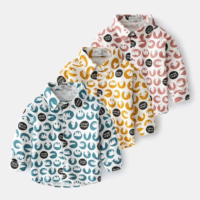 優寶購物《ubao.Tw》特貨品商城,黑貓宅配,取貨付款,兒童襯衫秋季新款兒童襯衣韓版滿印卡通寶寶上衣襯衫T恤童裝男童長袖襯衫潮童休閒風童裝 | Yahoo拍賣