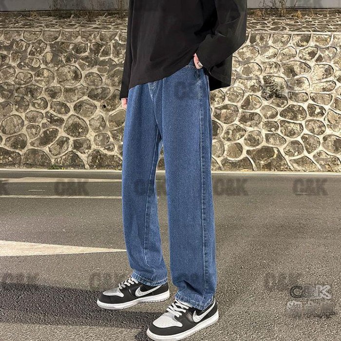 優寶購物《ubao.Tw》特貨品商城,黑貓宅配,取貨付款,潮衣庫『春秋季牛仔褲男港風寬松闊腿褲子男士流行潮牌潮流水洗直筒長褲男』牛仔褲長褲短褲闊腿褲休閒褲 | Yahoo拍賣