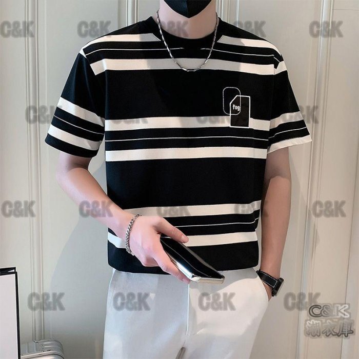 優寶購物《ubao.Tw》特貨品商城,黑貓宅配,取貨付款,潮衣庫『夏季圓領T恤男潮牌條紋半袖新款夏裝衣服半截袖潮流體恤短袖t』衣服短袖t恤上衣男裝寬鬆打底衫 | Yahoo拍賣