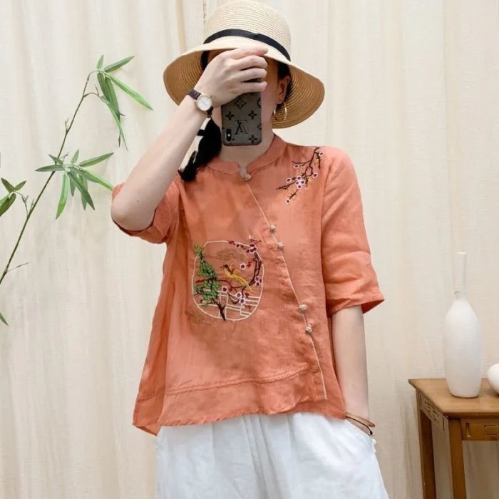 優寶購物《ubao.Tw》特貨品商城,黑貓宅配,取貨付款,下殺-2022夏季新款棉麻重工刺繡盤扣上衣文藝復古民族風茶服中國風襯衫~特賣 | Yahoo拍賣