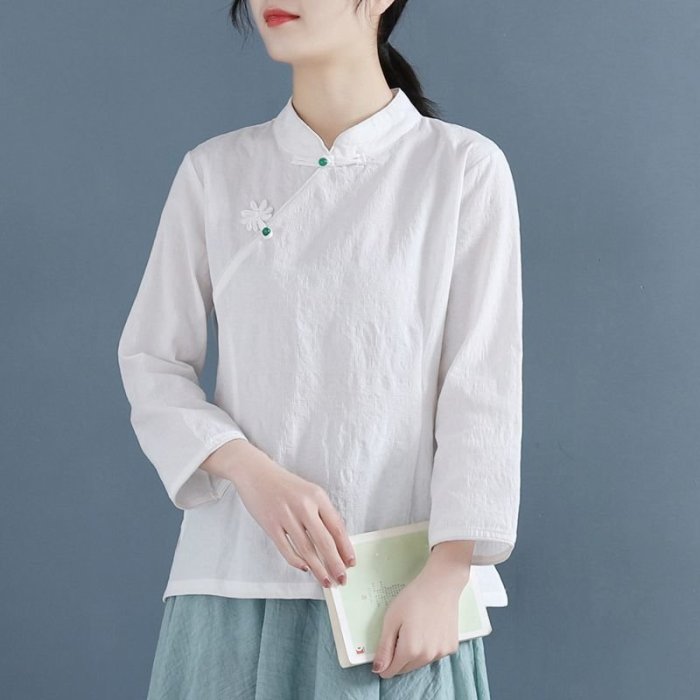 優寶購物《ubao.Tw》特貨品商城,黑貓宅配,取貨付款,下殺-2022中國風復古棉麻上衣女春裝短款長袖旗袍襯衫中式盤扣禪意茶服~特賣 | Yahoo拍賣