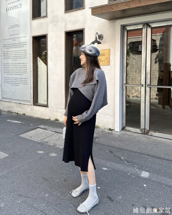 優寶購物《ubao.Tw》特貨品商城,黑貓宅配,取貨付款,下殺-PEIPEI佩佩孕婦裝法式經典套裝長袖外套秋季連衣裙冬裝毛衣兩件套 | Yahoo拍賣