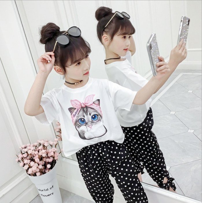 優寶購物《ubao.Tw》特貨品商城,黑貓宅配,取貨付款,?韓版中大女童 可愛貓咪印花 夏日短袖T恤【優選現貨】 | Yahoo拍賣