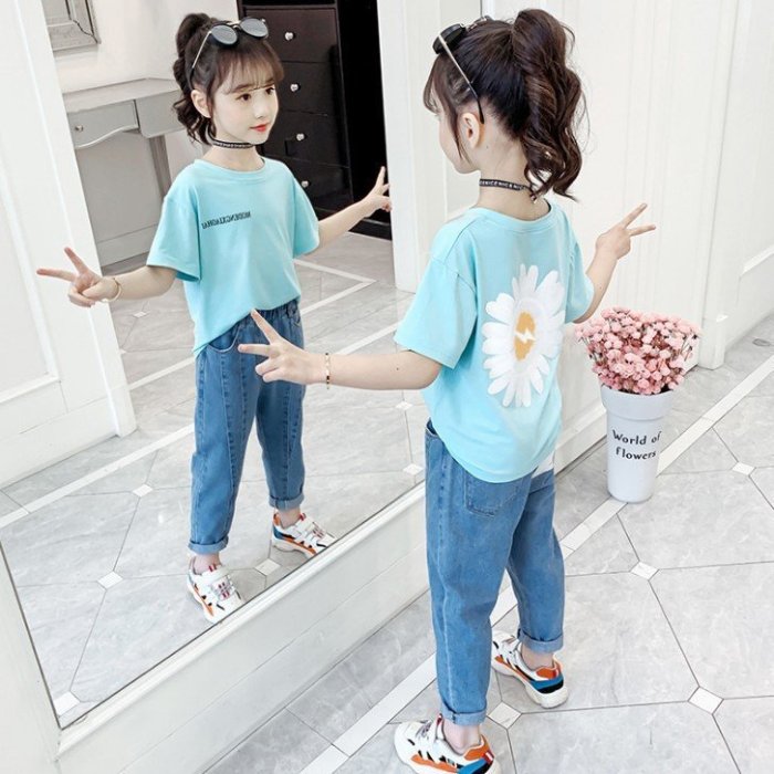 優寶購物《ubao.Tw》特貨品商城,黑貓宅配,取貨付款,韓版中大女童 夏日短T 大花朵 印花字母短袖上衣【優選現貨】 | Yahoo拍賣