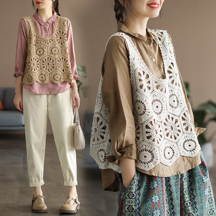 優寶購物《ubao.Tw》特貨品商城,黑貓宅配,取貨付款,勾花鏤空純色馬甲背心休閑寬松無袖大U領外穿內搭春裝馬夾上衣女/圓領背心#V領背心#荷葉領背心#連帽背心#馬甲超夯 正品 | Yahoo拍賣