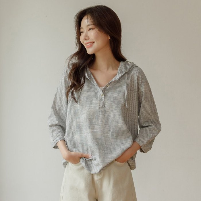 優寶購物《ubao.Tw》特貨品商城,黑貓宅配,取貨付款,Bellee 正韓 小格紋七分袖連帽襯衫上衣 (2色)【0508-25】 | Yahoo拍賣