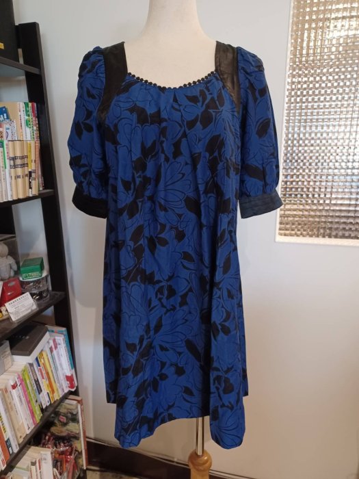 優寶購物《ubao.Tw》特貨品商城,黑貓宅配,取貨付款,NICE CLAUP ♥日本品牌♥ 寶藍亮澤素面 拼接黑色花卉 蓬袖洋裝 | Yahoo拍賣