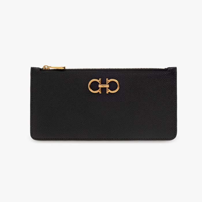 優寶購物《ubao.Tw》特貨品商城,黑貓宅配,取貨付款,[全新真品代購] Salvatore Ferragamo Gancini 黑色皮革 卡片夾 / 拉鍊皮夾 | Yahoo拍賣