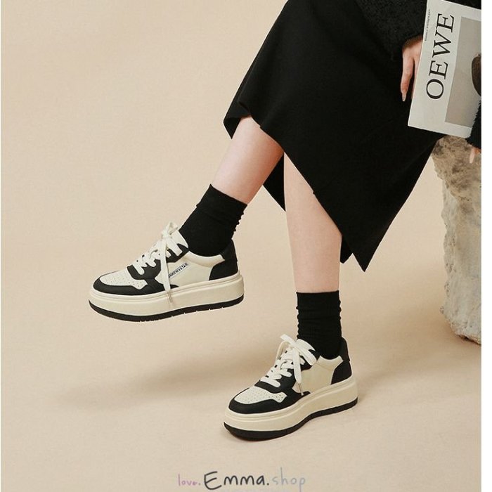 優寶購物《ubao.Tw》特貨品商城,黑貓宅配,取貨付款,EmmaShop艾購物-韓國同步上新-INS網紅款真皮雙色厚底板鞋/小白鞋/休閒鞋 | Yahoo拍賣