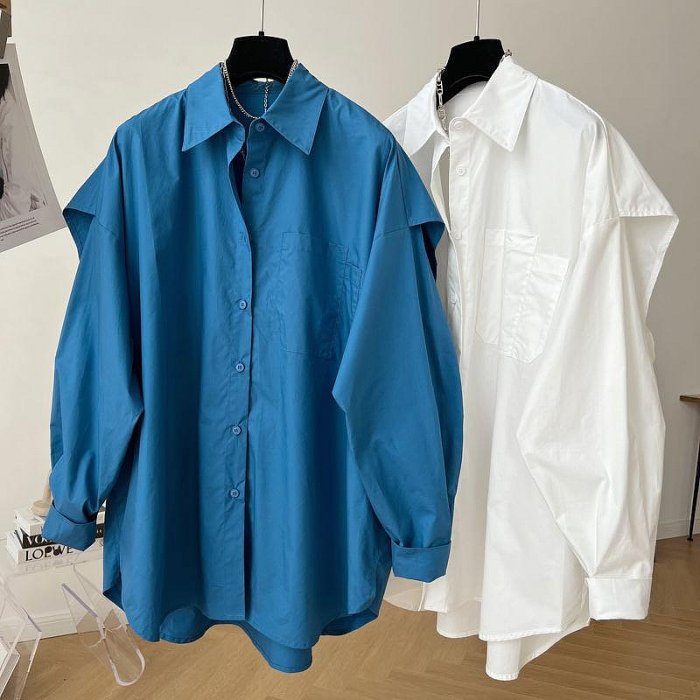 優寶購物《ubao.Tw》特貨品商城,黑貓宅配,取貨付款,藍調慵懶 風衣式 假兩件襯衫 外套 💙大碼可 實拍就是這麼美 | Yahoo拍賣