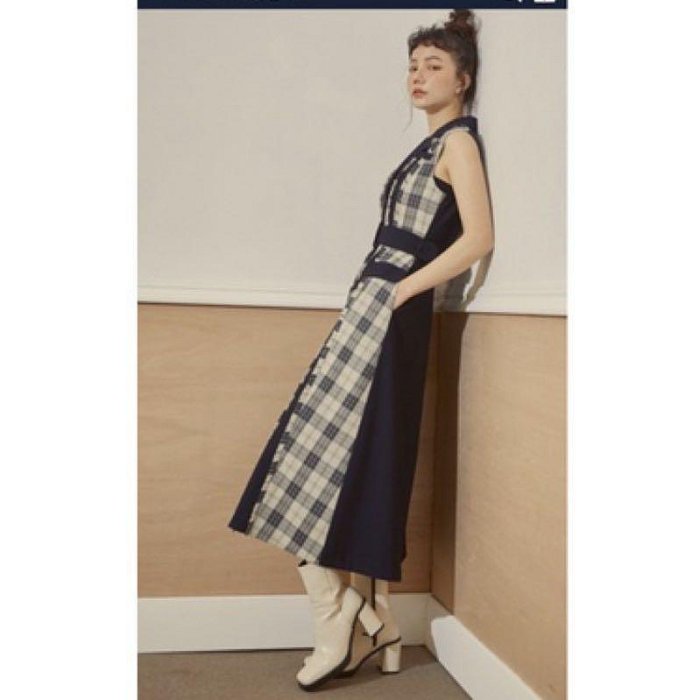 優寶購物《ubao.Tw》特貨品商城,黑貓宅配,取貨付款,日本專櫃品牌✨olive des olive不對稱格紋拼色背心洋裝 | Yahoo拍賣