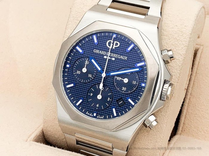 優寶購物《ubao.Tw》特貨品商城,黑貓宅配,取貨付款,【經緯度名錶】Girard Perregaux GP 芝柏 LAUREATO 81020 八角圈 藍色釘格紋錶盤 TLW68357 | Yahoo拍賣