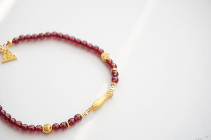 優寶購物《ubao.Tw》特貨品商城,黑貓宅配,取貨付款,4mm天然原礦石榴石 純銀小魚 設計單圈手串s | Yahoo拍賣