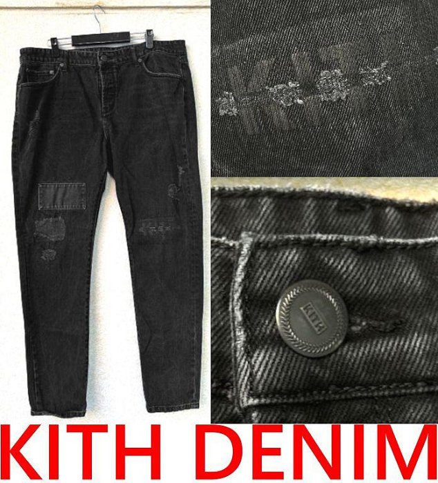 優寶購物《ubao.Tw》特貨品商城,黑貓宅配,取貨付款,BLACK極新KITH DENIM貼布破壞BOX LOGO窄版黑色牛王丹寧褲 | Yahoo拍賣