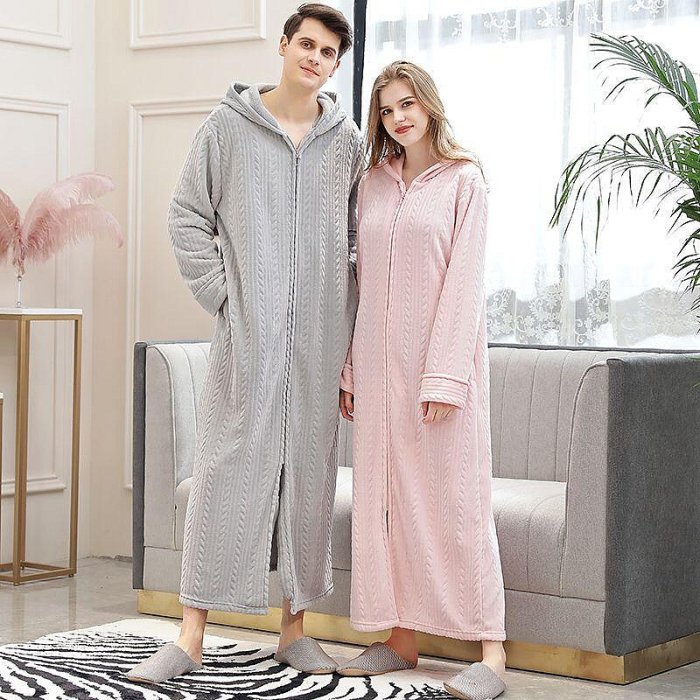 優寶購物《ubao.Tw》特貨品商城,黑貓宅配,取貨付款,秋冬拉鏈加厚長款法蘭絨睡袍女大碼男士保暖珊瑚絨浴袍情侶睡衣裙 | Yahoo拍賣