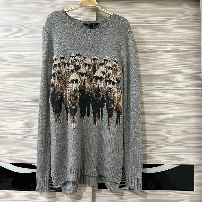 優寶購物《ubao.Tw》特貨品商城,黑貓宅配,取貨付款,BCBG 灰色 墨鏡羊駝 混紡羊毛 美麗諾羊毛 長袖 針織上衣 xs | Yahoo拍賣