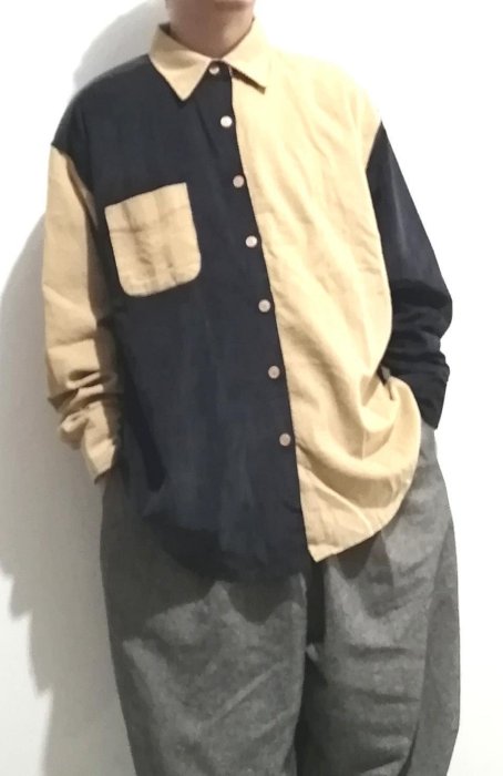 優寶購物《ubao.Tw》特貨品商城,黑貓宅配,取貨付款,韓國 pun-p 撞色 拼接 燈芯絨 oversized 襯衫 休閒衫 | Yahoo拍賣