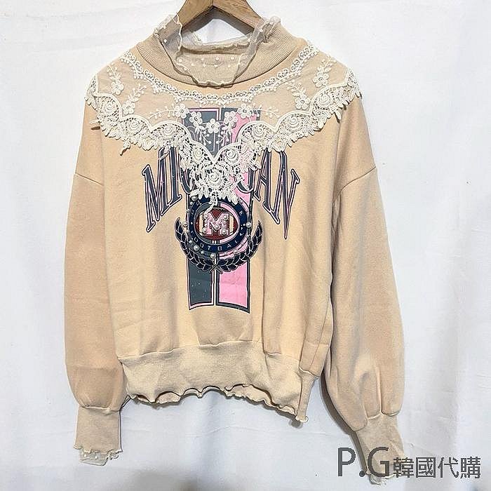 優寶購物《ubao.Tw》特貨品商城,黑貓宅配,取貨付款,韓製。現貨僅有一件。【 假兩件拚蕾絲雕花塗鴉釘珠木耳滾邊刷毛大學T-膚 】。韓國連線(限量)。P.G韓國代購 | Yahoo拍賣