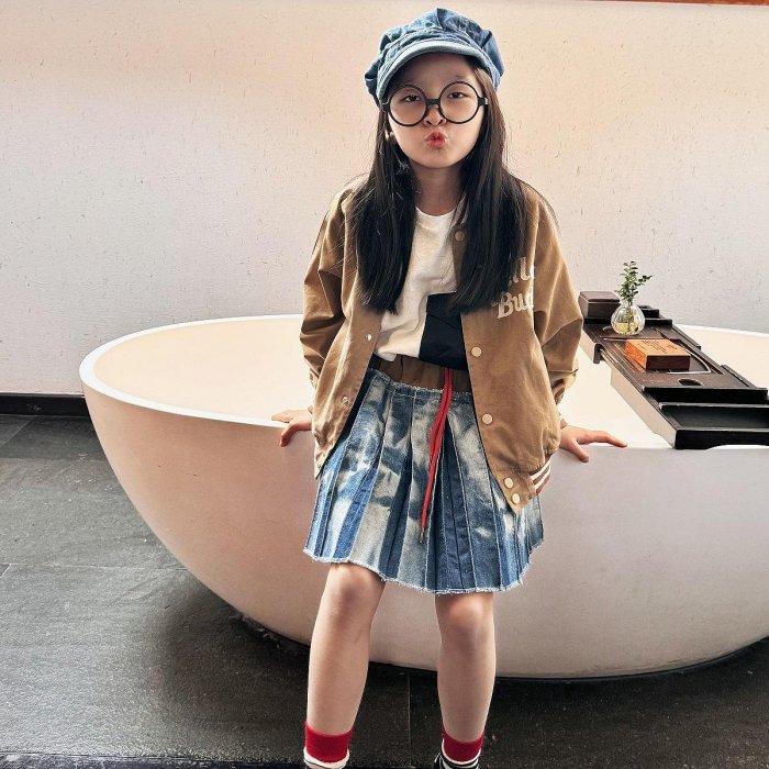 優寶購物《ubao.Tw》特貨品商城,黑貓宅配,取貨付款,miuko BABY款韓系兒童女寶寶女童 2024春款 自留款 日系 拼接 渲染 牛仔 百褶裙/100~160cm/現貨 | Yahoo拍賣