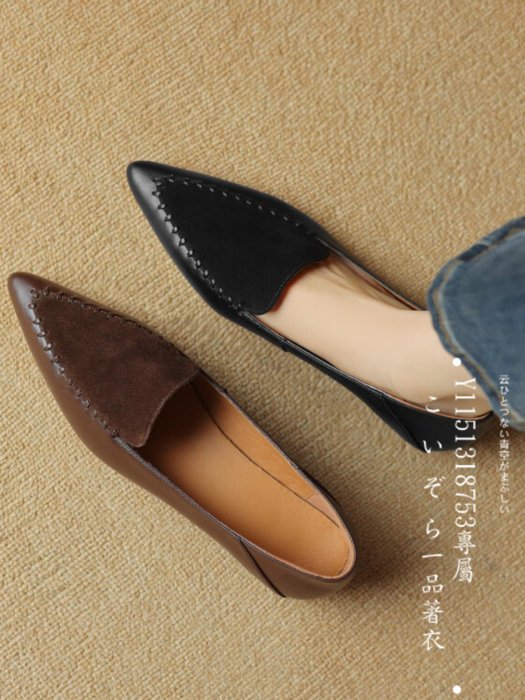 優寶購物《ubao.Tw》特貨品商城,黑貓宅配,取貨付款,||一品著衣|| 法式復古真皮尖頭鞋女春秋軟皮拼接羊皮平底鞋真皮豆豆鞋通勤單鞋 | Yahoo拍賣