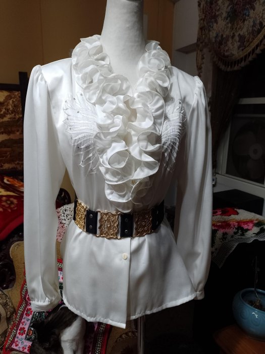 優寶購物《ubao.Tw》特貨品商城,黑貓宅配,取貨付款,13區復古品牌 古著珍珠色細緻刺繡木耳邊早期襯衫L號品項如圖二手無附腰帶 肩寬38公分袖長59公分胸圍40吋腰圍38吋長度59公分 | Yahoo拍賣