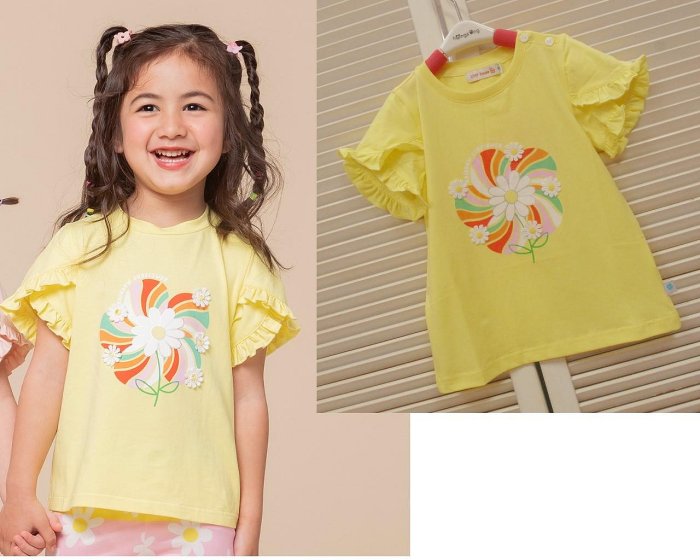 優寶購物《ubao.Tw》特貨品商城,黑貓宅配,取貨付款,『春夏The Little House童裝』41G105 涼感彩虹花短袖花瓣袖上衣(100/110/130CM)☆優惠商品☆ | Yahoo拍賣
