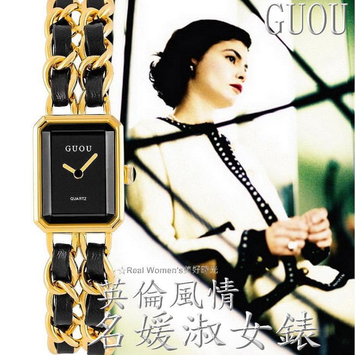 優寶購物《ubao.Tw》特貨品商城,黑貓宅配,取貨付款,香港 GUOU 英倫風情 名媛貴族 長方形 鏈帶 淑女錶 | Yahoo拍賣