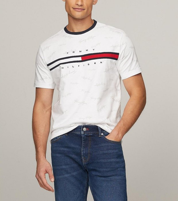 優寶購物《ubao.Tw》特貨品商城,黑貓宅配,取貨付款,【TH男生館】TOMMY HILFIGER滿版草寫印圖織帶拼接短袖T恤【TOM001P9】(XS-S-M) | Yahoo拍賣