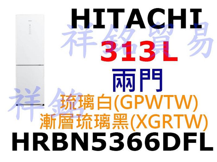 優寶購物《ubao.Tw》特貨品商城,黑貓宅配,取貨付款,祥銘HITACHI日立313公升兩門冰箱HRBN5366DFL GPWTW (琉璃白) / XGRTW(漸層琉璃黑)請詢價 | Yahoo拍賣