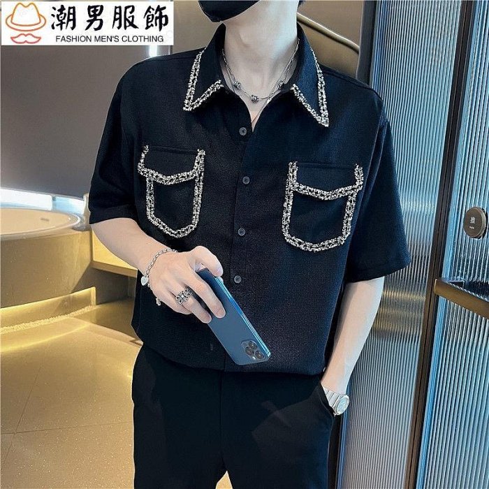 優寶購物《ubao.Tw》特貨品商城,黑貓宅配,取貨付款,新品 男生襯衫 男裝 短袖上衣 黑襯衫 男 短袖襯衫 男 新款小香風潮牌短袖襯衫男士夏季襯衫潮流百搭寬鬆五分袖 | Yahoo拍賣