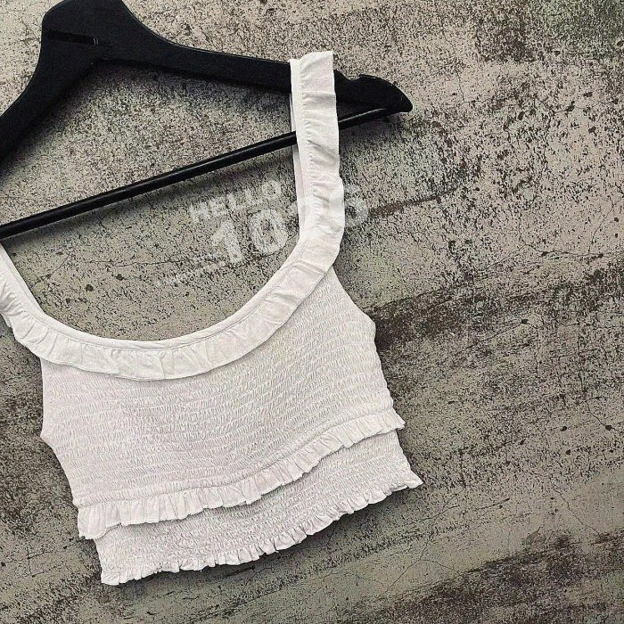 優寶購物《ubao.Tw》特貨品商城,黑貓宅配,取貨付款,+1026+歐美 荷葉邊小背心小可愛 露腰短版 度假風白色吊帶背心 U領低胸小背心 荷葉花邊肩帶吊帶 鏤空露背小背心 | Yahoo拍賣