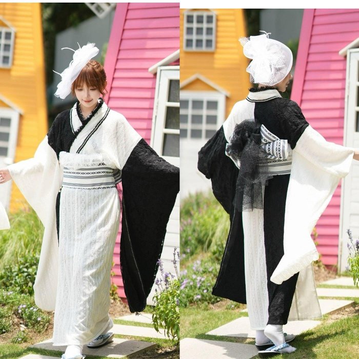 優寶購物《ubao.Tw》特貨品商城,黑貓宅配,取貨付款,12 黑白蕾絲和服女日本改良大振袖畢業禮服正裝和風甜美舞台裝 | Yahoo拍賣