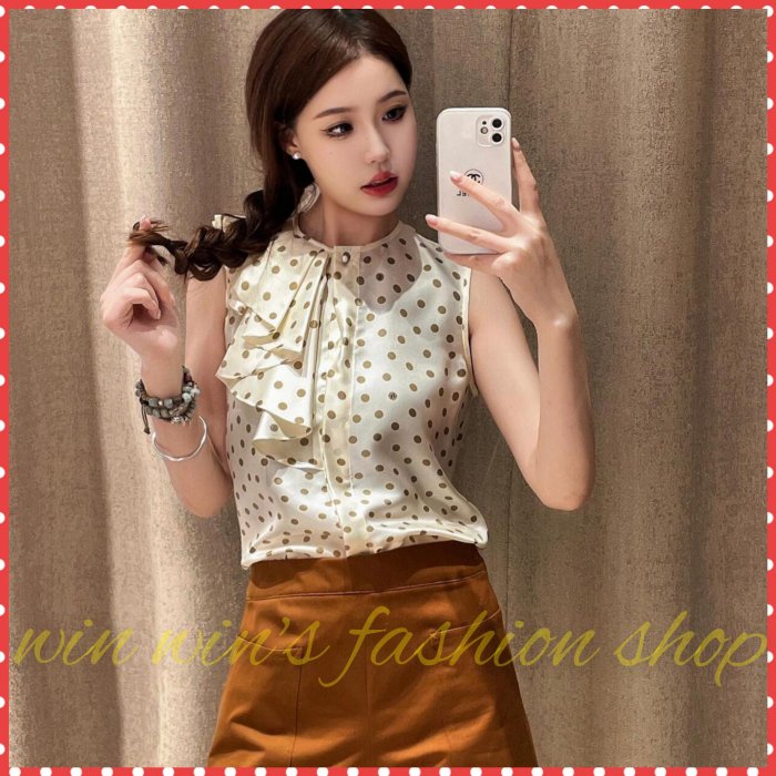 優寶購物《ubao.Tw》特貨品商城,黑貓宅配,取貨付款,M@xmara真絲圓點荷葉領背心上衣 | Yahoo拍賣