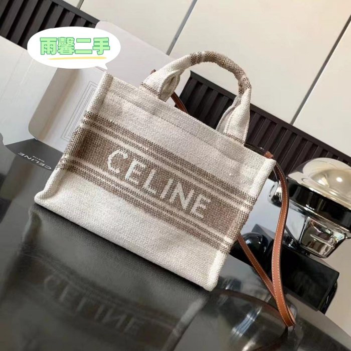 優寶購物《ubao.Tw》特貨品商城,黑貓宅配,取貨付款,雨馨二手 CELINE 賽琳 凱旋門 提花條紋 托特包Tote包 購物袋 手提包 棕色/米色 現貨 | Yahoo拍賣