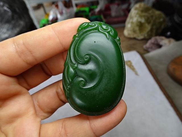 優寶購物《ubao.Tw》特貨品商城,黑貓宅配,取貨付款,《藍晶寶石》→〈雕刻項鍊系列〉→外蒙料高冰種清透和闐菠菜碧玉精雕〈大如意→Z290-3 | Yahoo拍賣