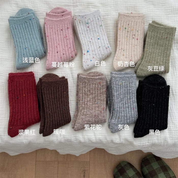優寶購物《ubao.Tw》特貨品商城,黑貓宅配,取貨付款,【CHERRY LALA 日韓】實拍。24秋。加厚羊絨 彩色點點 中筒襪 保暖日系 柔軟氛圍感 羊絨堆堆襪 YM2466 | Yahoo拍賣