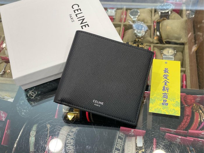 優寶購物《ubao.Tw》特貨品商城,黑貓宅配,取貨付款,☆最愛二手精品☆ CELINE TRIOMPHE 全新黑色全皮顆粒紋燙銀字 LOGO 皮革對開8卡片夾皮夾短夾 10B653BEN XG9090 男用 | Yahoo拍賣