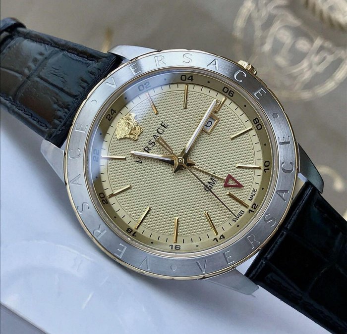 優寶購物《ubao.Tw》特貨品商城,黑貓宅配,取貨付款,現貨VERSACE Univers GMT 褐色錶盤 黑色皮革錶帶 石英 男士手錶 VEBK00218 | Yahoo拍賣