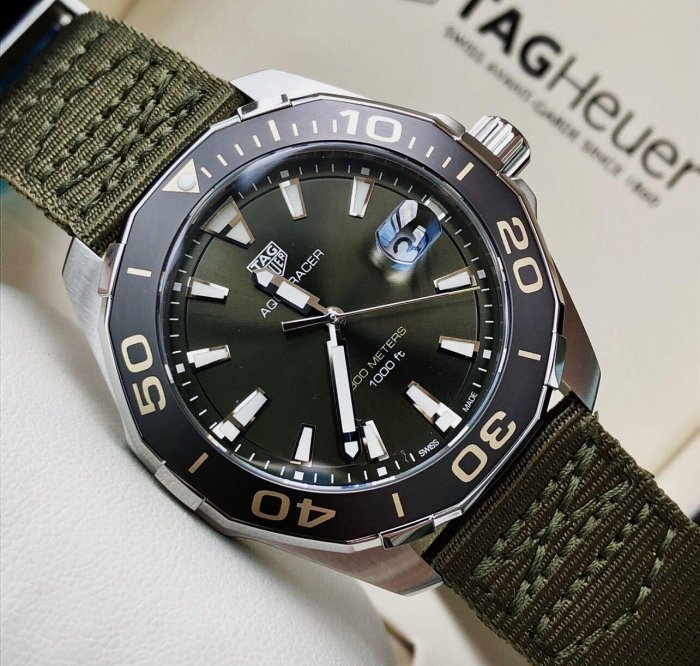 優寶購物《ubao.Tw》特貨品商城,黑貓宅配,取貨付款,現貨TAG HEUER Aquaracer 綠色錶盤 軍綠色尼龍錶帶 石英 男士手錶 WAY101E.FC8222 豪雅 競潜 300M | Yahoo拍賣